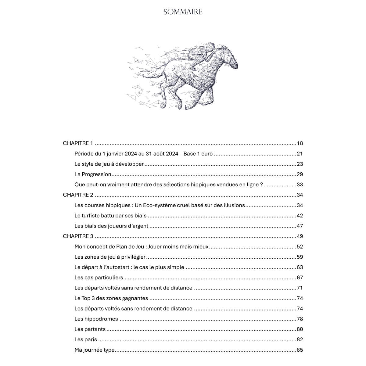 Il s’agit d’un témoignage authentique d’une personne qui a choisi de vivre du jeu et d’une restitution pédagogique des processus mis en place pour y arriver. Vous allez bénéficier d’un retour d’expérience unique et précieux.J’ai conscience d’être un turfiste inclassable. Peut-être même sans le savoir, je le transpire. Je ne suis ni mathématicien, ni journaliste hippique, ni un turfiste de terrain adepte des hippodromes, ni un méthodiste. Mon jeu est basé sur une synthèse de ces profils mais pas seulement ; c’est une expertise unique et un décodage de toutes les informations de la musique des chevaux. Les quatre années de jeu professionnel m’ont amené à profiler la cible qu’il fallait atteindre : devenir un centaure du jeu (mi-homme, mi-cheval).